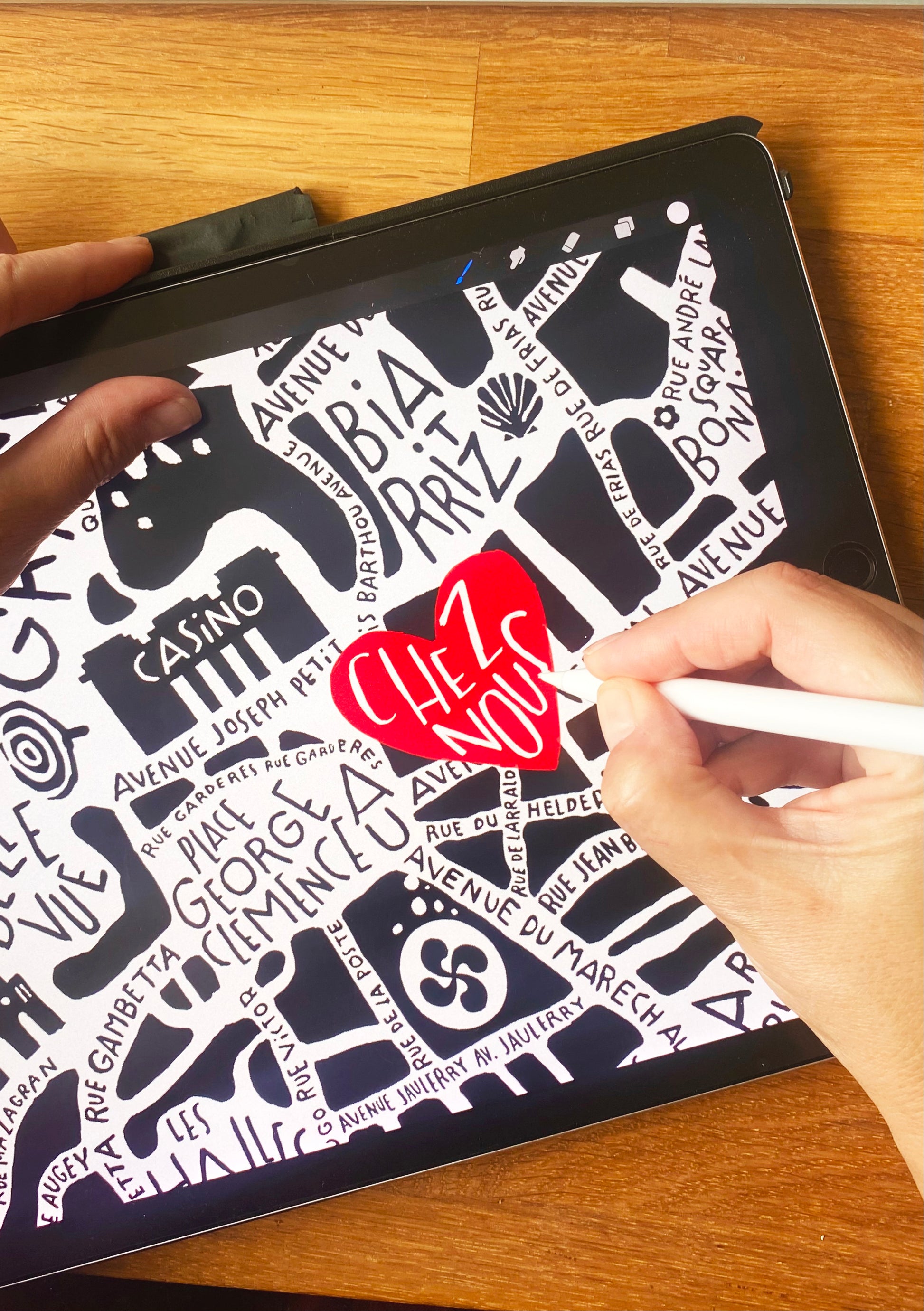 Nous proposons des plans de ville illustrés à la main dans notre atelier. Puis, ils sont imprimés sur une série de produits et articles de décoration aux belles matières.