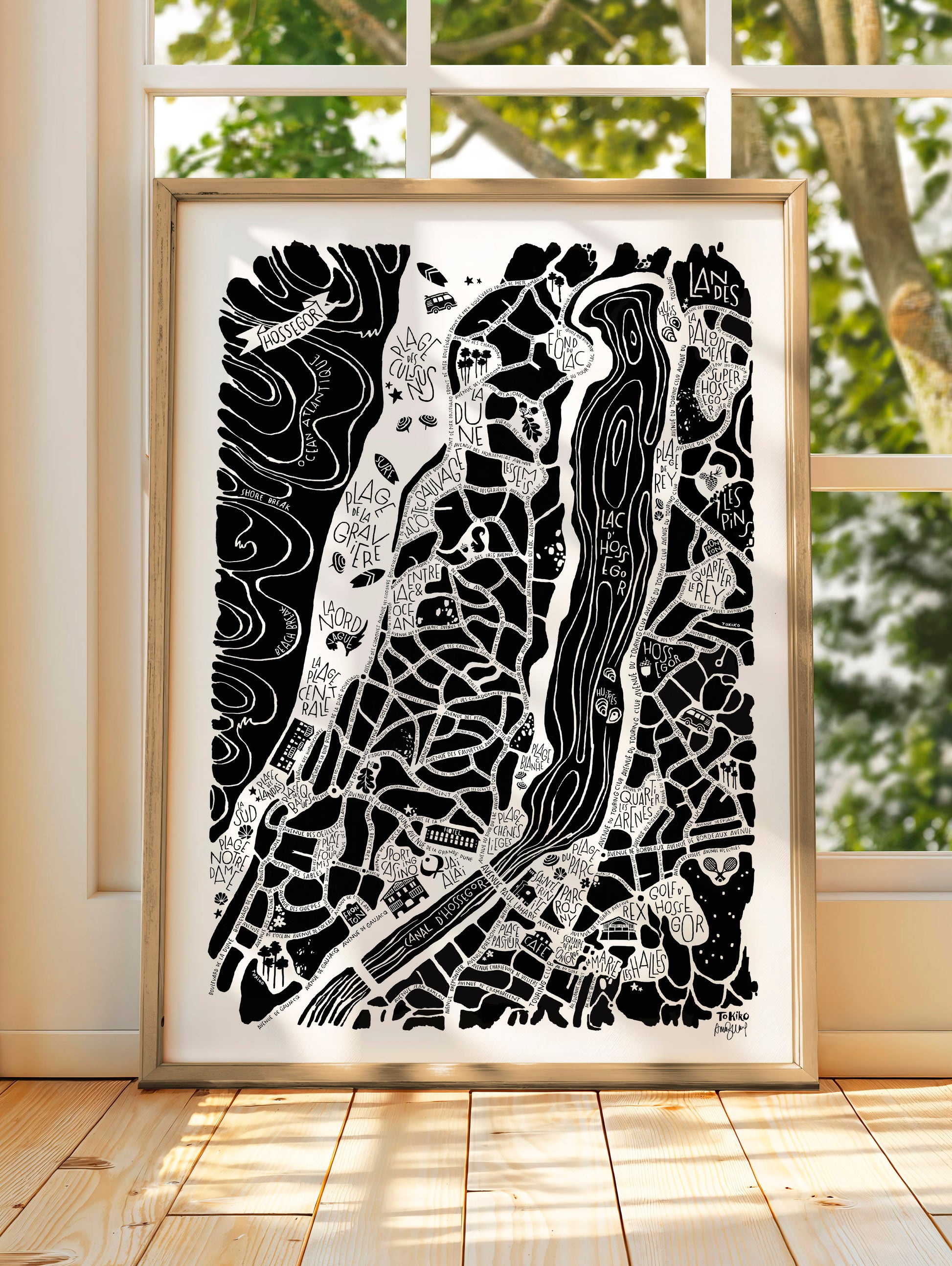 Tout d’abord, cette illustration de Hossegor est imprimée à Bayonne sur un papier épais, artistique et haut de gamme. Avant tout issu de forêts gérées durablement. En effet, nous travaillons avec de l’encre à éco-solvant recyclable, et notre papier est labellisé ECF et certifié FSC.
